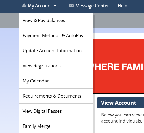 1. Log in at CommunityPass, and hover over “My Account” in the top, left corner.